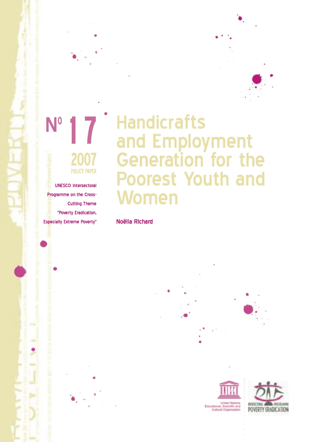 Handicrafts and Employment Generation for the Poorest Youth and Women is a 2007 Policy Paper from UNESCO International's Programme on the Cross-Cutting Theme "Poverty Eradication, Especially Extreme Poverty," written by Noëlla Richard.